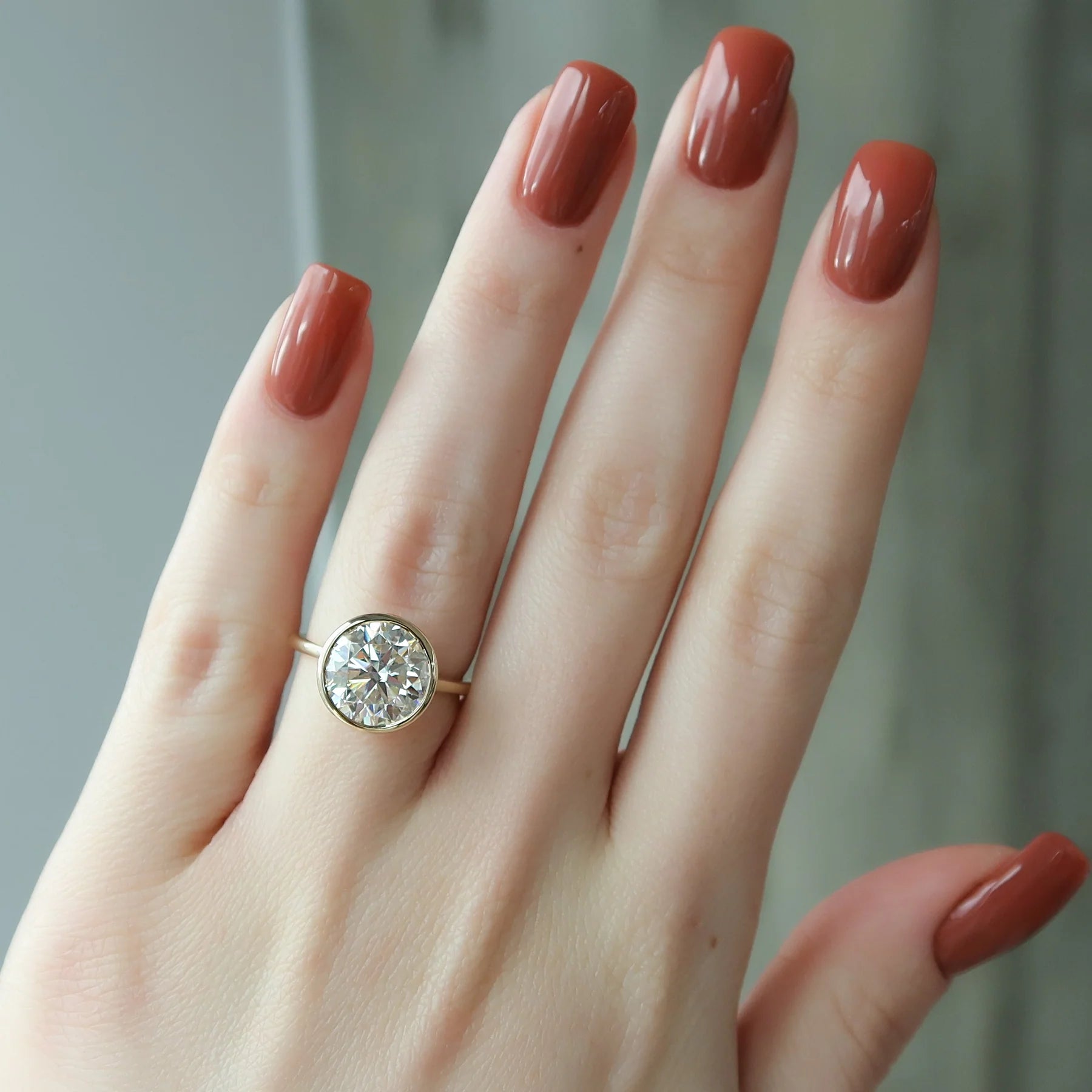 Meet The Sherda - sleek, stylish, and subtle. This captivating bezel-set engagement ring embodies the strength and resilience of true love. The metal frame enclosing the center stone comes with a little secret: a strip of pave-set diamonds. The band is lined with additional accents for a breathtaking but practical everyday piece.